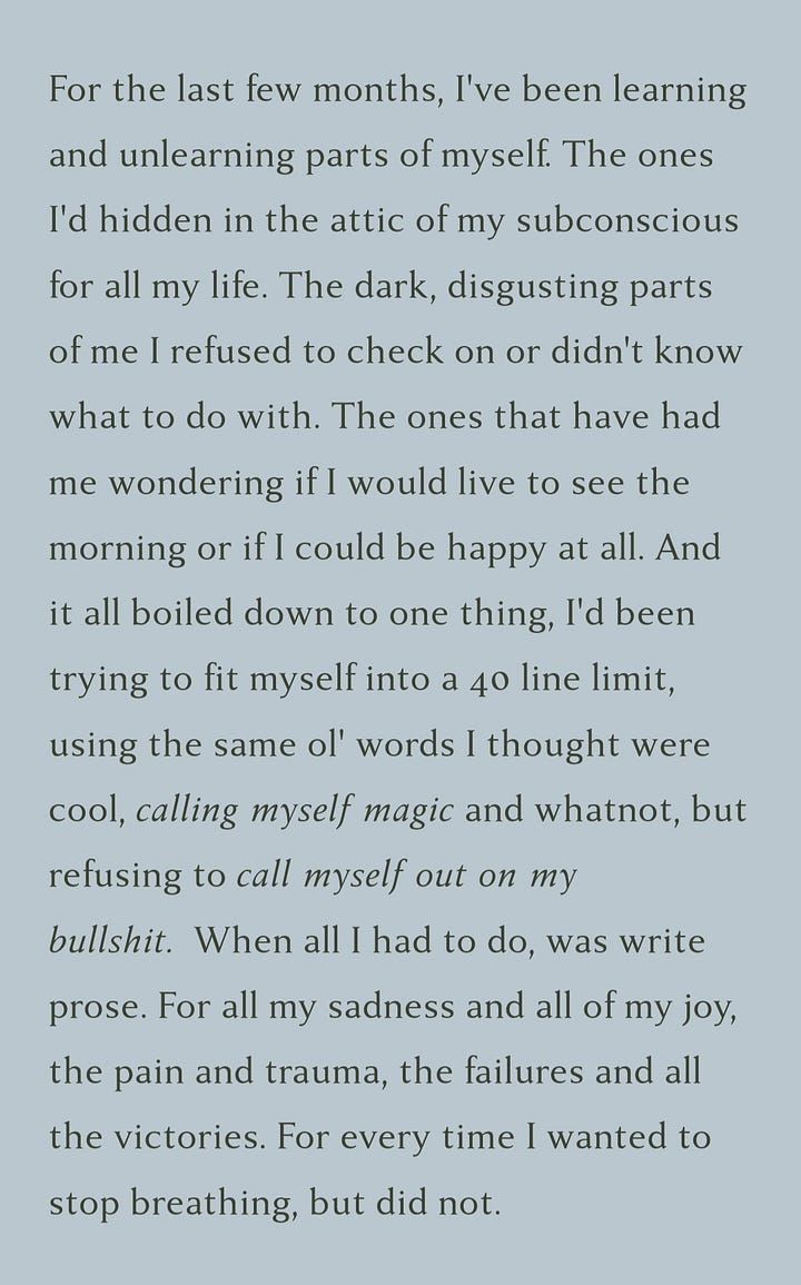 In the past few years, I’ve been through a lot of shit that almostkindasorta ruined me, and I almostkindasorta let it, keyword- almost. But my mother raised no quitter. Nope, she raised a stubborn perfectionist hyper independent lil shit with a thing for pretty kpop bois. So at some point, I got my head out of my ass and told myself what I unconsciously thought about every toxic BFF I’ve ever had - Get therapy I can fix you. My journey from Wreck it Ralph to Fix it Felix is a story for another time, another newsletter. For now, I am proud of having gotten a lot of my ducks in order, colour-coded and organised by height. And I have spent most of 2022 learning how to adult. The real world however has left me no time for art, and social media is something I find exceptionally draining to take part in. I am too old for romanticising every other clusterfuck happening to me or the world. And I have absolutely no patience for people and putting up appearances. Twenty-two yr old me may have thought that my micro-managed, aesthetic, colour-coded Instagram feed Instagram, would make me feel whole, but no more. I feel 80 yrs old already. I just want peace and quiet and pets and a bunch of BTS albums and members if the universe lets me.